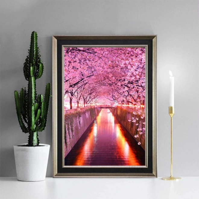 Ce kit créatif de peinture diamant vous guide pas à pas vers une œuvre saisissante représentant des cerisiers au-dessus d’un canal. La toile adhésive de qualité, avec symboles colorés, garantit un placement facile des strass et une progression fluide. Le tableau fini se distingue par un éclat délicat qui apporte une touche unique à votre intérieur.