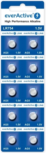 Piles bouton alcalines AG5 / LR754 / LR48 – blister de 10 pcs