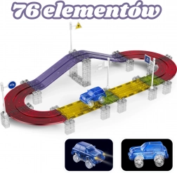 Découvrez un kit de construction qui grandit avec l’imagination de vos enfants. Les éléments magnétiques se fixent rapidement et solidement, permettant de créer des ponts, des rampes et des virages serrés sans outils. Grâce à la voiture éclairée par LED, la conduite reste attrayante même dans l’obscurité.