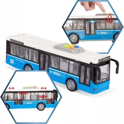 Découvrez le bus urbain WOOPIE, superbement réalisé à l’échelle 1:16, qui séduira les enfants par ses détails et ses fonctions authentiques. Il suffit d’appuyer sur l’un des quatre boutons sur le toit pour que le bus sonne comme un vrai: démarrage du moteur, conduite, marche arrière et klaxon. L’intérieur est rétroéclairé et les portes s’ouvrent et se ferment manuellement à l’aide d’une molette pratique.
