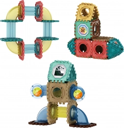 Avec le set de construction WOOPIE, enfants et adultes disposent d’un excellent outil pour créer des constructions solides et inventives. Les dalles magnétiques et les pièces spéciales de la piste à billes s’emboîtent facilement et permettent de réaliser des projets stables et multiniveaux. Grâce aux éléments transparents, le mouvement des billes est parfaitement visible, favorisant la compréhension des principes fondamentaux de la physique et de la gravité.