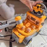 camion de chantier, marteau souple, 6 « pièces », mini voiture de chantier (sélection aléatoire), tournevis