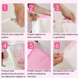 Créez pour les enfants leur propre endroit magique. Cette tente maisonnette spacieuse dans une délicate teinte de rose offre un coin sûr pour lire, jouer et se reposer. Grâce à sa structure simple et légère, vous la monterez facilement à la maison ou dans le jardin et la démontrez tout aussi rapidement.