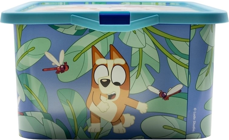 Pratique boîte de rangement en plastique avec le motif BLUEY, offrant une utilisation multifonctionnelle pour jouets, jeux de construction et petits objets. Elle est fermable avec un couvercle amovible et, grâce à ses dimensions compactes, se glisse facilement dans les étagères et les chambres d’enfants.