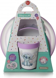 Adorable set de vaisselle enfant 3‑en‑1 avec motif LILO & STITCH pour rendre chaque repas plus agréable. Comprend un assiette, bol et gobelet, est sans BPA et les pièces sont compatibles micro-ondes et lave-vaisselle (voir spécifications).