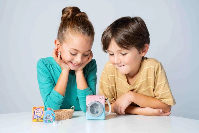 Transforme la lessive en un rituel magique ! La mini machine à laver Washlings, avec porte ouvrante, tambour rotatif et tuyau d’évacuation, offre aux enfants un jeu ménager réaliste et sûr. Dans la boîte, tu trouveras un sachet « sale » – après lavage, il révélera un petit animal surprise et un gant/serviette tout doux, que tu peux suspendre sur le mini étendoir.