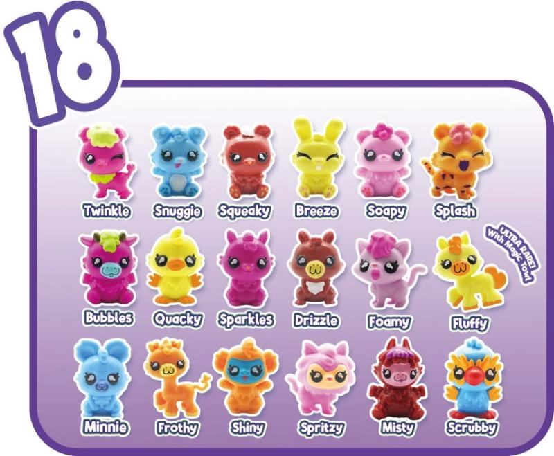 Une collection de 18 petits animaux adorables t’attend, dont un est ultra rare avec un gant/serviette spécial. Chaque lavage est une nouvelle expérience qui stimule l’imagination, la motricité fine et le jeu de rôle. L’animal ne peut pas être choisi – la surprise dure jusqu’au bout !
