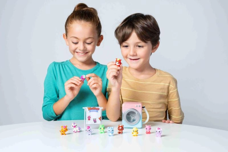 Place le sachet « sale », ajoute de l’eau et observe comment, après le lavage, apparaît une figurine Washlings avec un mini gant/serviette – amusement et suspense à chaque jeu.
