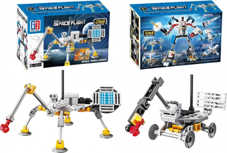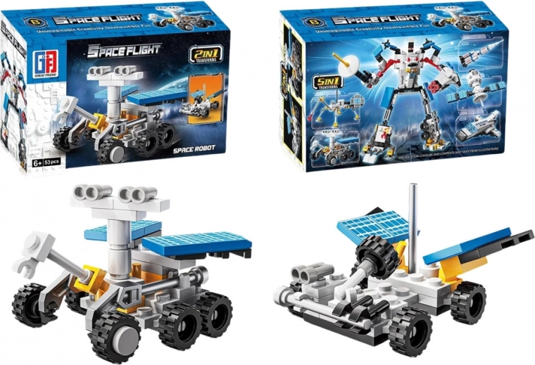 Le kit Espace 2‑en‑1 est un choix idéal pour les enfants qui aiment les fusées, sondes, satellites et véhicules futuristes. Chaque paquet offre la possibilité de construire deux variantes d’un modèle à partir d’un seul set, doublant ainsi le plaisir et l’entraînement de l’imagination. Les pièces sont en plastique résistant et sûr, conçu pour supporter un jeu quotidien.