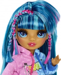 La poupée Skyler Bradshaw de la collection Rainbow High Jr. High brille dans son bleu iconique et est prête à monter sur scène. Grâce à son corps entièrement articulé, tu peux facilement la placer dans des poses spectaculaires, et avec le micro et le mini amplificateur, tu lances un vrai show. Une tenue minutieusement travaillée, de longs cheveux bleus et des accessoires thématiques font de cette poupée une pièce parfaite pour jouer et exposer.