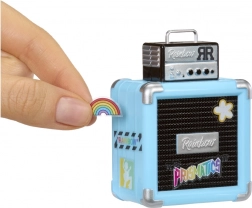 La boîte contient tout pour une diversion musicale immédiate – un ensemble de mode deux pièces, des chaussures stylées, un micro avec pied, un mini amplificateur, une planche d’autocollants pour la décoration et une brosse pour coiffer les cheveux. Combine les accessoires, invente des histoires et collectionne aussi les autres membres du groupe pour compléter ta scène.