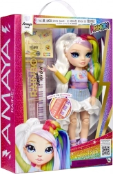 Amaya Raine de la série Rainbow High Jr. High apporte aux enfants l’univers de la mode et de la musique dans une adorable poupée. Grâce à ses longs cheveux arc‑en‑ciel, sa tenue détaillée et ses articulations, elle est prête pour les concerts, les photos et l’exposition sur une étagère. Les accessoires, y compris le mini clavier, encouragent les jeux de star de la musique.