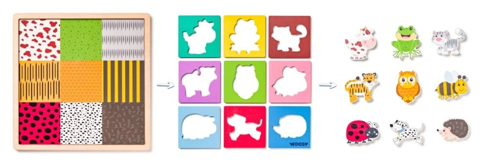Le puzzle en bois « Motifs d’animaux » est un excellent choix pour les enfants d’âge préscolaire. Les pièces solides se saisissent facilement et, en les assemblant, les enfants apprennent à reconnaître les formes et les animaux, tout en exerçant la coordination œil-main et la patience. Ses dimensions compactes sont parfaites à la maison comme en voyage.
