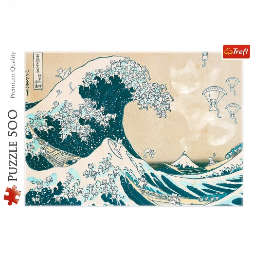 Découvrez un divertissement pour toute la famille avec un puzzle de 500 pièces sur le thème de la grande vague féline. Une fois assemblé, il forme une image de 48 × 34 cm. Le papier calandré de qualité réduit les reflets et les couleurs intenses sont imprimées avec des encres écologiques de qualité alimentaire. Convient aux enfants à partir de 3 ans.