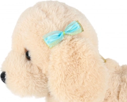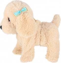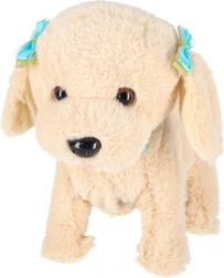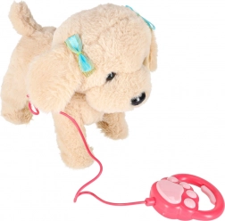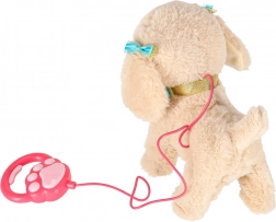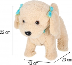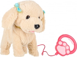 Le jouet est fabriqué en peluche douce combinée à un plastique résistant. Il est alimenté par 3 piles AA (non incluses). Sont également inclus une laisse stylée de 65 cm et des accessoires colorés qui confèrent au chien un look unique.