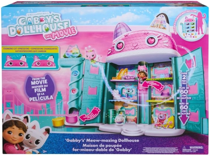 La grande maison des chats de GABBY'S DOLLHOUSE invite les enfants dans un univers imaginaire avec six petites pièces, un toit pivotant révélant un grenier secret et de multiples possibilités de jeu. Grâce au Cat‑A‑Vator (ascenseur) fonctionnel, les personnages se déplacent facilement entre les étages pour découvrir de nouvelles scènes et surprises.