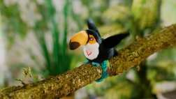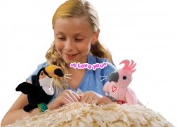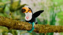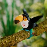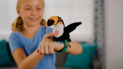 Adorable toucan de la marque Steppos offrant des heures de divertissement aux enfants : tu le fixes à ton poignet, il répète la voix, chante une chanson d’oiseau et bat des ailes. Commandes simples et design joyeux pour stimuler le jeu créatif et le développement du langage.