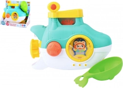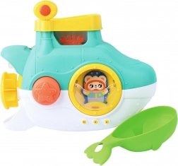 Ce sous-marin de bain coloré apporte à la fois amusement et apprentissage. À l’aide de la pelle fournie, versez de l’eau dans la partie supérieure et regardez les éléments mobiles tourner et l’eau s’écouler. Des ventouses pratiques garantissent que le sous-marin adhère fermement aux surfaces lisses de la baignoire ou du carrelage.