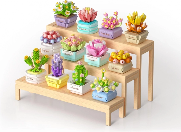 Les pièces se clipsent facilement, parfait même pour les débutants. Plusieurs modèles sont disponibles – du cactus aux fleurs épanouies jusqu’aux élégants épis violets. Chaque modèle offre un rendu spectaculaire et forme une composition florale 3D dans des tons pastel.