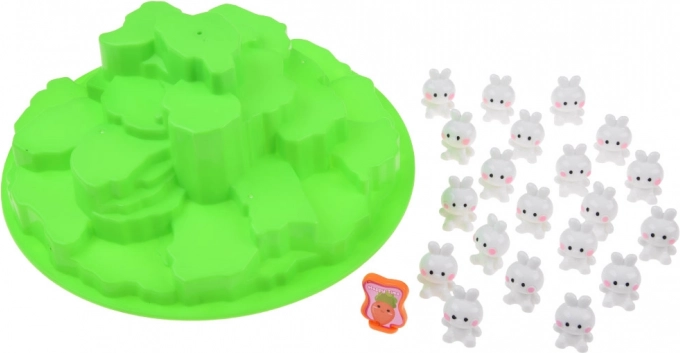 Lapins en équilibre – jeu d’adresse amusant pour enfants dès 3 ans. 2–4 joueurs, base oscillante et 20 lapins. Développe motricité, logique et patience.