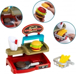 Le set Burger shop est un ensemble de cuisine soigneusement conçu pour les petits chefs, offrant une expérience authentique de préparation des en-cas favoris. Les enfants peuvent combiner librement les différentes pièces pour créer un burger exactement selon leurs envies, l’accompagner de frites et choisir ketchup ou mayonnaise – comme dans une vraie cuisine.