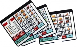 Trois cartes thématiques transforment l’environnement de la caisse en libre-service, restaurant ou boutique classique. Les enfants choisissent l’histoire qu’ils veulent jouer.
