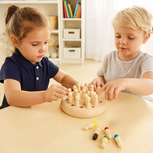 Découvrez un jeu logique amusant pour enfants et adultes – les échecs mémoire en bois KRUZZEL. Entraînez le cerveau, la concentration et la mémoire en lançant le dé et en retrouvant les pièces correspondantes. Le jeu est fabriqué en bois de qualité et propose des règles simples, faciles à maîtriser par toute la famille. Idéal comme cadeau et pour les voyages grâce à un emballage compact et à une construction robuste, au développement des compétences cognitives et au divertissement familial sans écran.