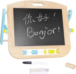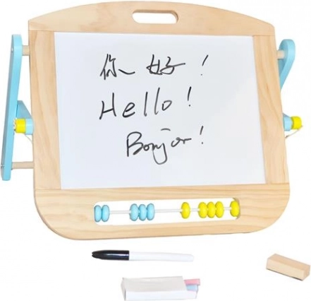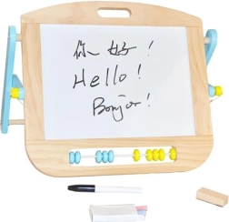 Le tableau de table multifonction est un excellent support pour les premiers dessins, l’écriture et l’apprentissage. Grâce aux deux surfaces, les enfants passent facilement du feutre à la craie, entraînent leur motricité fine et développent leur imagination. Le boulier bicolore intégré soutient les premières compétences mathématiques.