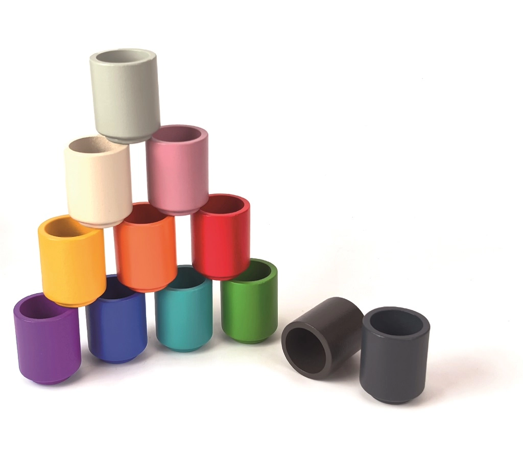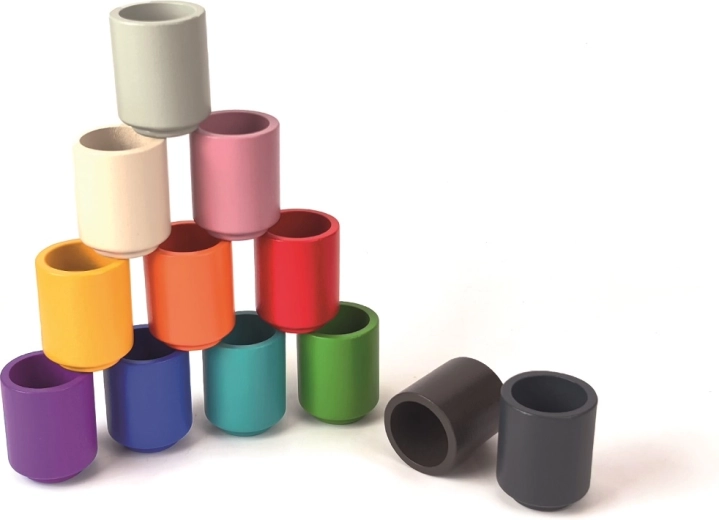 L’ensemble en 12 couleurs arc-en-ciel favorise la reconnaissance et l’association des couleurs, les précompétences mathématiques et la concentration.