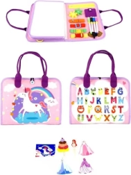 Découvrez la magie du jeu et de l’apprentissage réunis : ce livre sensoriel d’activités au motif licorne développe la motricité fine, la logique, la concentration ainsi que la perception sensorielle. Grâce à des activités comme des boutons, boucles, fermetures éclair, velcros et lacets, les enfants s’exercent de manière ludique aux compétences essentielles pour l’autonomie. Le livre est souple et léger – idéal à la maison comme en voyage et parfait comme cadeau.