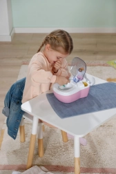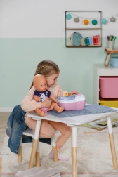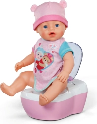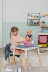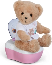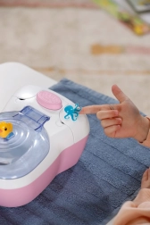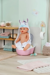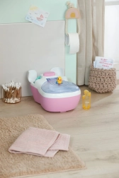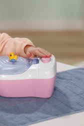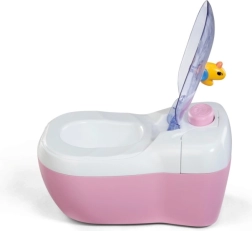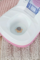 Les toilettes interactives BABY born transforment les soins quotidiens de la poupée en un rituel amusant. Dès que la poupée s’assoit sur l’abattant, on entend des bruits d’éclaboussures réalistes, et si elle reste assise plus longtemps, une mélodie drôle se lance, suivie du bruit de la chasse d’eau. Le tout motive les enfants à s’entraîner de façon ludique aux habitudes d’hygiène.