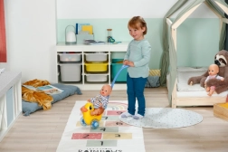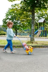 Les roulettes transparentes à grelots avec perles apportent un effet sonore ludique et stimulent la perception sensorielle. Sous le siège se cache un compartiment secret pour les petits objets, rendant chaque sortie encore plus aventureuse. La qualité de fabrication assure un jeu durable plein d’imagination.