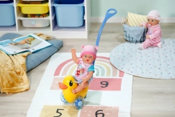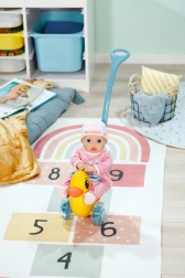 Profitez de promenades amusantes avec votre poupée grâce au pousse-pousse Berta de BABY BORN. Il offre une barre de guidage réglable, un dossier ajustable et des roulettes transparentes à grelots remplies de perles. Le siège est universel pour toutes les poupées BABY BORN et ravira avec un compartiment secret pour les petits trésors.