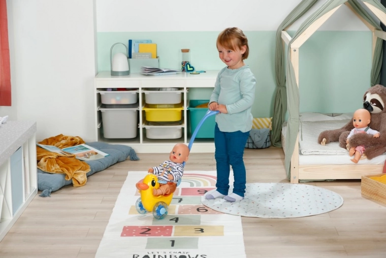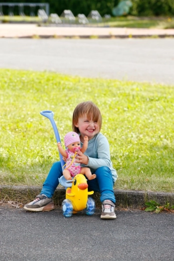 Le pousse-pousse Berta est l’accessoire idéal pour les jeunes soigneuses et soigneurs. Grâce à sa barre de guidage amovible et réglable, il s’adapte facilement à la taille de l’enfant et assure une conduite confortable. Le dossier réglable et la barre de maintien garantissent qu’aucune poupée BABY BORN ne manque de place sur le siège.