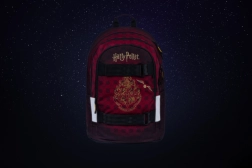 La matière recyclée et déperlante, les éléments réfléchissants et les fermetures éclair YKK fiables sont complétés par le design POUDLARD, avec des sangles pour skateboard et un pendentif stylé.