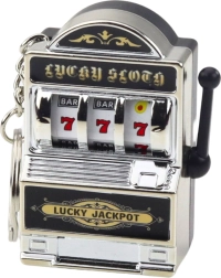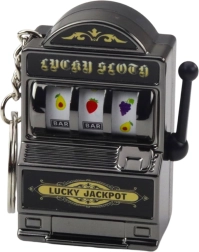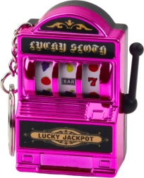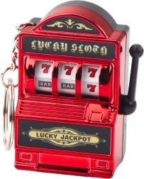Version mini de la classique machine de casino sous forme de porte-clés pratique ! Ce gadget original possède un levier mobile qui fait tourner les rouleaux à symboles, et grâce à ses dimensions compactes 6 × 4 × 2,5 cm, vous l’emportez partout. Un accessoire ludique et un cadeau original pour les fans d’ambiance casino.