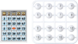 - Coffret complet – boules 1–75 + 5 de rechange, 20 cartes, tableau des numéros, notice