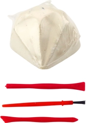 - « Pierre » en forme de diamant, cristal-surprise, outils (burin, marteau, pinceau), emballage original