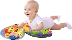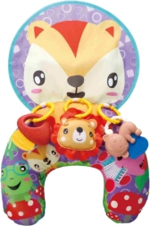 Il inclut un tapis bruissant à motif renard, qui émet un son au toucher, et trois suspensions colorées à accrocher pour développer la coordination main–œil et la motricité fine. L’ensemble combine les fonctions de jouet, de tapis éducatif et de soutien confortable pour des exercices en toute sécurité.