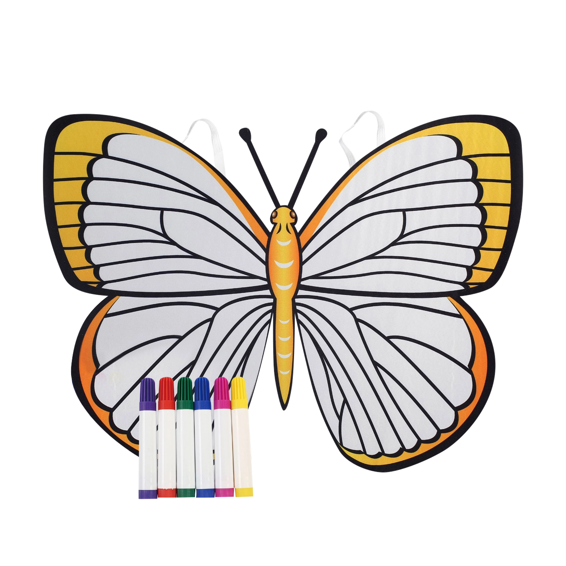 Transformez chaque après-midi en aventure féerique. Les ailes de papillon jaunes à colorier permettent aux enfants de devenir les principaux créateurs de leur propre costume. Grâce au textile de qualité et aux 6 feutres fournis, la décoration est facile et amusante – pour un résultat unique.