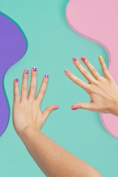- Repoussez les cuticules et nettoyez les ongles pour une meilleure adhérence.
