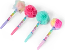 La boîte contient tout le nécessaire pour s’amuser immédiatement – un gobelet avec poudre pour slime, un sachet de décorations pour l’orner, une mesure et une figurine surprise. Différentes variantes de couleurs sont disponibles (turquoise, rose, violet et autres), afin que chacun trouve sa préférée.
