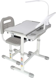 Pratique, ce bureau d’écriture pour enfant avec chaise et lampe LED USB en coloris gris crée un espace ergonomique et ordonné pour l’étude et la créativité. La hauteur du bureau et de la chaise se règle en douceur pour suivre la croissance de l’enfant. Le bureau dispose d’un plateau relevable, d’un grand tiroir avec organiseur, d’un porte-sac, d’un emplacement pour gobelet et d’un support pour livre. La petite lampe LED offre 3 modes d’éclairage et 3 niveaux de luminosité pour un éclairage optimal de jour comme de nuit.
