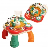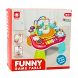 La table peut être utilisée comme une table classique sur pieds ou comme un panneau éducatif à plat – grâce aux pieds amovibles, elle s’adapte facilement à l’âge de l’enfant et à l’espace. Le centre de l’attention est le lapin mobile, qui stimule l’attention et la coordination œil-main, tandis que le petit piano et le tambour accompagnent le jeu avec des mélodies et des sons joyeux.