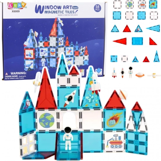 - 58 pièces magnétiques de différentes formes et couleurs, figurine d’astronaute, fusée, tuiles décoratives à motifs spatiaux