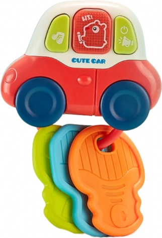 Voiture interactive avec clés pour bébés dès 6 mois, alliant jeu et apprentissage. Elle offre des effets lumineux et sonores, trois clés amovibles et lavables et une conception sûre en plastique de qualité. Elle favorise la motricité fine, le développement sensoriel et la coordination œil-main, est résistante et, grâce à ses dimensions compactes, idéale aussi en voyage.