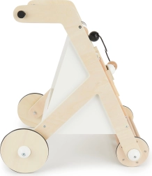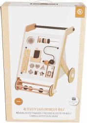Le trotteur est stable et facile à manœuvrer, les roues en caoutchouc sont silencieuses, antidérapantes et respectueuses des sols. Sa construction robuste garantit une longue durée de vie et un appui sûr grâce à la poignée ergonomique. Sept activités variées soutiennent le développement naturel de l'enfant :