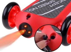 Amusante trottinette électrique tricycle pour enfants, offrant une stabilité sûre, un éclairage LED spectaculaire, de la musique façon DISCO et un effet vapeur impressionnant. Commandes simples par boutons, plateforme antidérapante et poignées en caoutchouc confortables en font un cadeau idéal pour les enfants dès 3 ans.