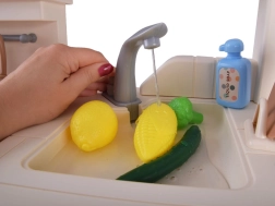 La cuisine favorise le développement de la créativité, de la motricité fine et de la coopération. Les enfants peuvent composer leurs propres sandwichs, baguettes et hamburgers avec des éléments multicouches, planifier un « menu » et découvrir des aliments sains.