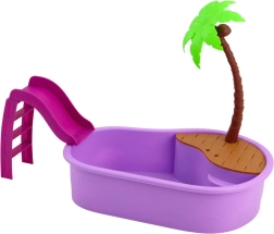 - Set estival pour jeu créatif : piscine, toboggan, palmier et accessoires thématiques.